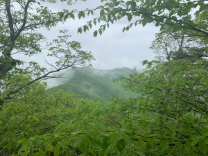 Next day was off to Hightop Hut only 8 miles away. Before we started, Larry in his 70’s from the Potomac AT Trail Maintenance Club stopped by to service the shelter. He filled us with stories about bears, Shenandoah, Trail Maintenance etc. while we packed up. He lives 10 miles away, routinely checking on this shelter. Today I would see my first bear! There was evidence of bears all along the trail ever since entering the park. I was coming down into Powell Gap and heard a loud branch crack. I knew it wasn’t a small animal so I scanned the hillside. Nothing. I took 10 more steps around a bend in the trail and there he was looking straight at me. Probably 30 yards away. At first I just wanted to get my phone out but would have to abandon my trekking poles. I was told to raise them up and make myself look bigger so I thought it best just to observe and see if he was concerned about my being in his playground. He sat up on his hind end and just stared at me. Not seeming aggressive I decided to back up a little and shed my poles, got my phone ready to take a picture but he started to leave just as my two hiking companions arrived. We all tried to get his picture and I finally grabbed one before he disappeared.