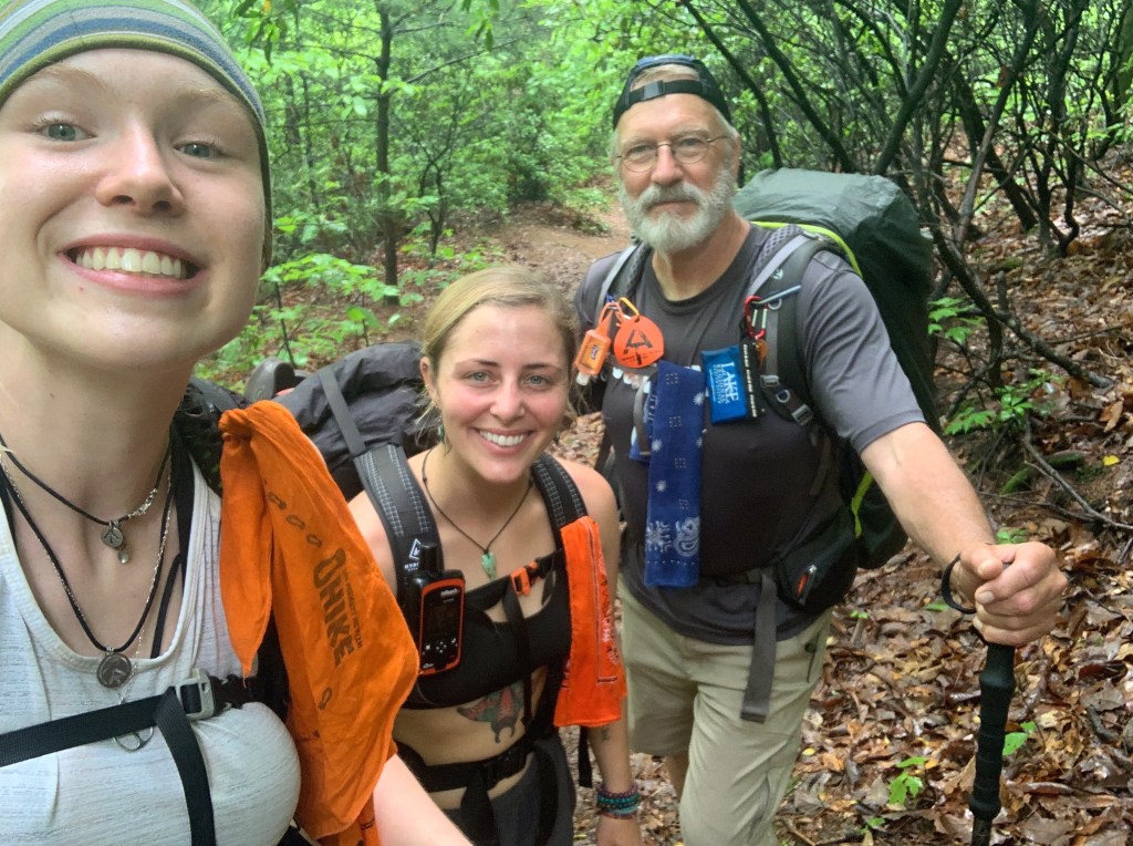 I need to explain a few things first. I had a lot of wet gear including my sleeping pad and bag from last nights rain. I was anxious to get to the next shelter and hoped the sun would shine to help dry things out. When wet a down bag has no insulation value and is very hard to get dry. The Harpers Creek Shelter was only 7.6 miles away. But it did have a 500 ft. climb, followed by a steep 3000 ft. drop and then another 800 feet up before a mile walk to the shelter. We had just done the first 500 up and halfway down the Priest when two young female hikers approached me headed up the hill. They stopped and talked for a second obviously full of energy.