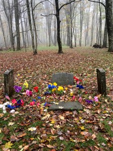 The first part of the climb seemed easier than anticipated. Along the way the rain dissipated but the fog increased in density. The white blazes on the trees became hard to see in the surreal environment. I came across the grave site of three Union soldiers and their 13 year old cousin. They had been killed returning to their homes in 1863. There are solemn moments when the Trail unexpectedly delivers you to some tragic story from the past. I always stop and consider what happened to all those involved.