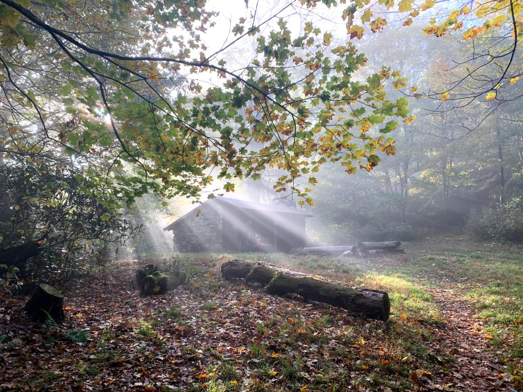 I stopped at Hogback Ridge Shelter for a snack and water, taking the time to change out of my long johns which I had worn that morning to fight the cold temperatures. I also removed my hoodie which started to get damp with sweat as I climbed. These were two pieces of clothing that needed to stay dry because I depended on them for warmth at night. The anticipated rain suddenly seemed closer. From here it was downhill a short way followed by a 700 ft. climb and then another downhill of around 1200 feet to Devil’s Fork Gap. This is where the rain started. Slow at first but hard enough to force me to put on a rain jacket. There was three miles to the shelter mostly uphill. Thankfully the trees shielded me from the worst of the rain and only the bottom of my pants and shoes were getting wet. The climb seemed easy enough and by 3 o’clock I arrived at the shelter. To my surprise Gears and Theory were here, having made the distance before the rain. They were completely dry. I quickly changed to my warm, dry sleep wear and got in my bag for a short nap just as the rain began to pour from the sky. I had avoided the worst as it would continue the rest of the day and into the night.