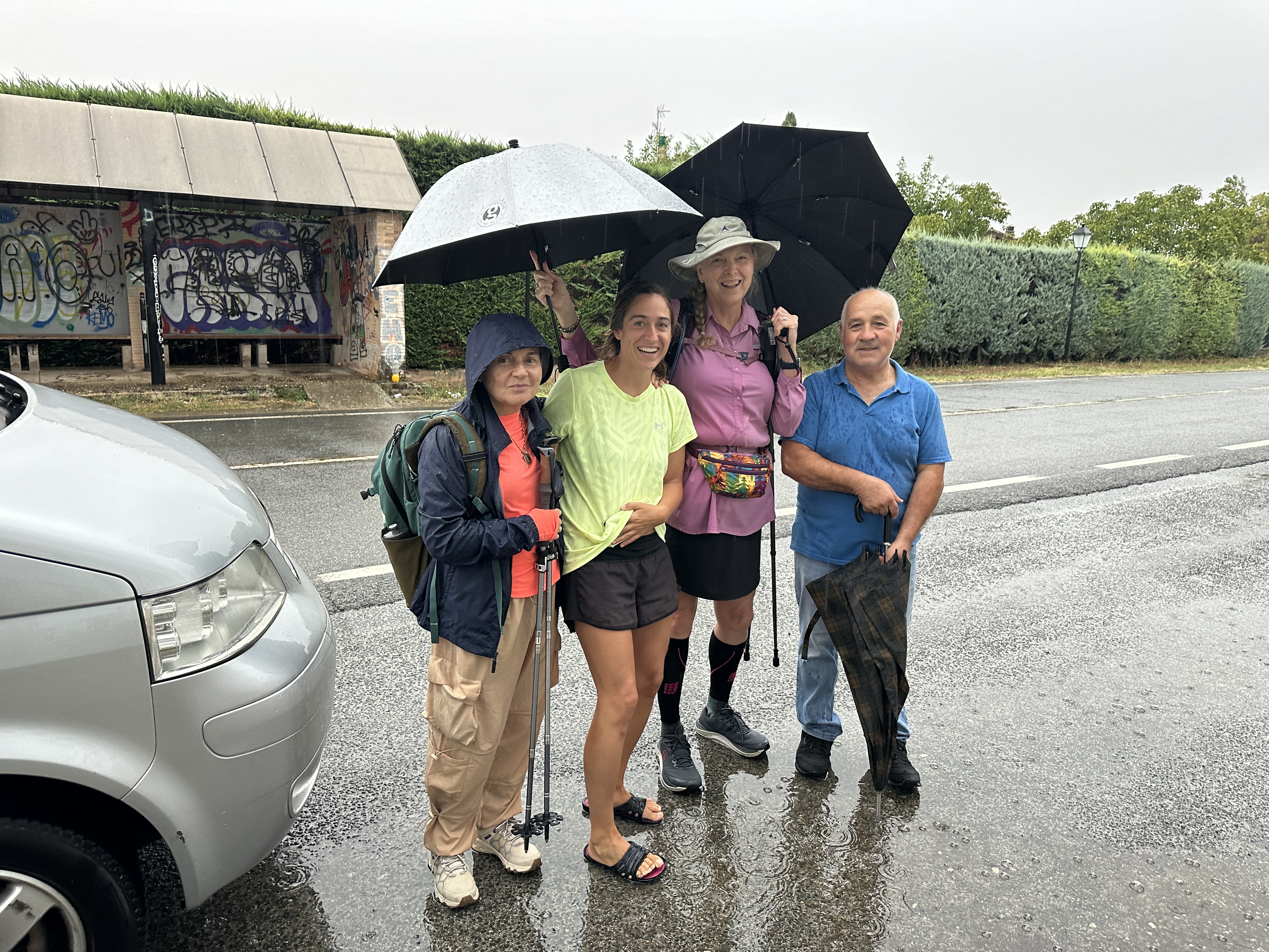 The night before we had a communal meal with 16 other pilgrims. Each told a little of their story and why they wanted to walk the Camino. The meal itself was terrific especially the creamed vegetable soup made with ingredients from the garden. Afterwards we all stayed and conversations continued as if we all knew each other for years. There were 2 women from Australia, a Frenchman who was traveling together with a young man from Texas who had walked 30 miles that day. Estrella, the proprietor gave them the yoga room floor to sleep on because all the other rooms were booked. Two men we shared a room with, one from Brazil and one from an Asian country that sadly I didn’t recognize. Communication can at times be so frustrating and this was one of those. Also a group of mothers (sisters) and their daughters were walking for 5 days,